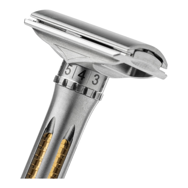 L'Osprey è un rasoio progettato per adattarsi perfettamente a diverse routine di rasatura, grazie alla sua ampia gamma di regolazioni e alla possibilità di modificare il peso. Si presta a ogni tipo di barba, sensibilità della pelle e livello di esperienza. Con un design leggero in tre pezzi, unisce la solidità e la compattezza di un rasoio di sicurezza tradizionale alla versatilità di un rasoio innovativo.
