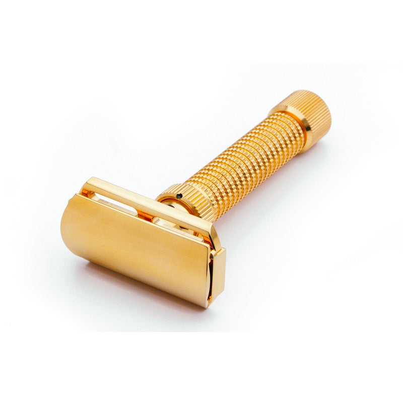 Il modello Deluxe aggiunge una finitura a specchio placcata di vero Oro 24K puro al 99.99% . La pulizia del rasoio sarebbe simile a qualsiasi gioiello d’oro; meglio eseguito da un professionista o specializzato in prodotti per la pulizia dell’oro.