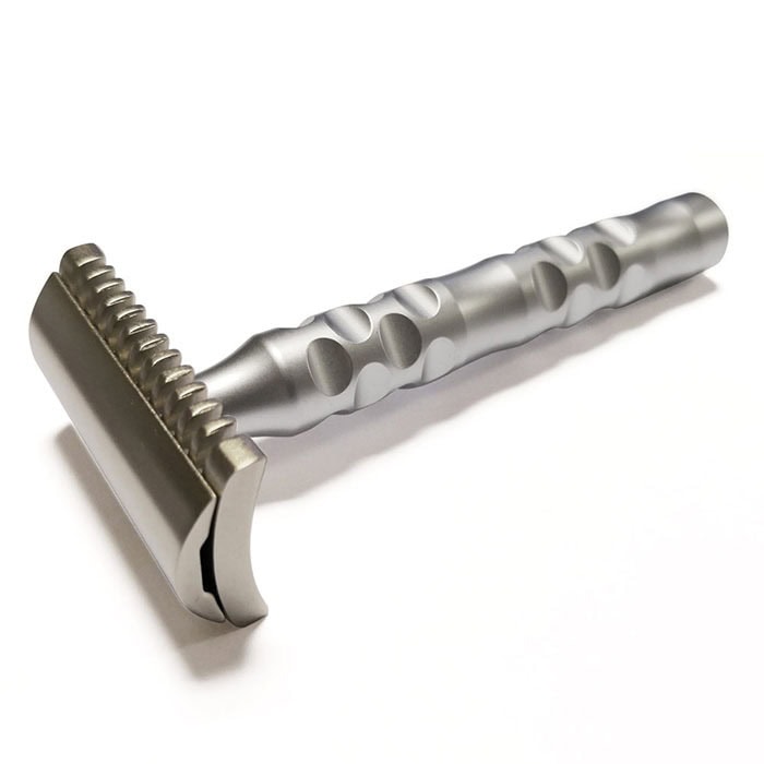 Il Manico, in acciaio inox aisi 303 con trattamento al cromo duro, rende il prodotto antigraffio, antiruggine e potenzialmente eterno. Inoltre, il design estremamente ricercato fanno di questo rasoio di sicurezza un vero e proprio must have.